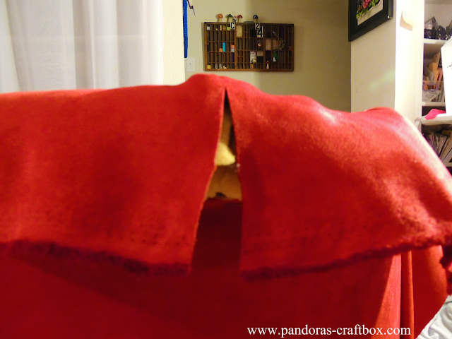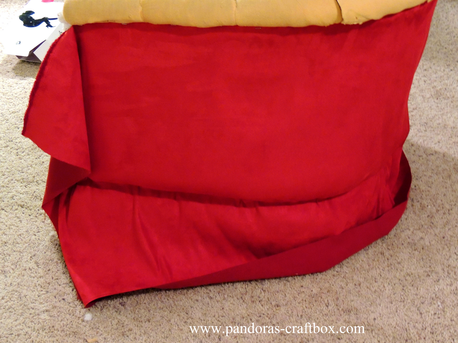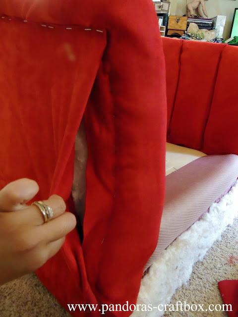 Now to do the top part of the fabric I cut little slits in the fabric where two different piece of foam meet.