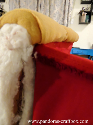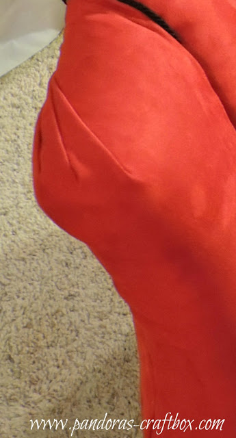 I decided to do three folds at the top. I had to do this because of the way the arm is curved. Because the arm is curved it leaves extra fabric and this is the way I found that makes it look pretty. Now the hard part starts, I need to make the other arm look the same. I always have a hard time doing this. I find that one arm is always prettier than the other.