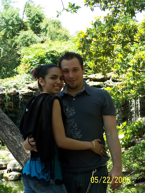 It all started almost 9 years ago in college. I had a roommate named Ruth and she was a graphic design student while I was taking biological studies in school. She would hang out with four other guys she met also in her major. She was really close to them and was always telling me about them. She also would ask me if I wanted to hang out with her and the guys, but I always said no. However, one day I said why not I feel bad telling her no all the time... and that's when I saw him. He had the most beautiful blue eyes I have ever seen and spiky blond hair with abs to die for (hubby note* i don't remember those). He was just talking with his friends playing on a ledge outside by the cafeteria. I felt the blood rush to my head and back down to my toes. I could not even look anyone in the eye because I was afraid everyone could see right through me to my desires. During the entire meal I kept my eyes down and barely spoke to anyone. It did not help that I am extremely shy with new people(Hubby note* She says that but she puts on her "New Yorker face" which i always took as she didn't want to talk because she was pissed off heh). During the next year I would get the same rush of blood and heat every time I saw him walking through the campus. I never said anything to him besides hello the entire year.