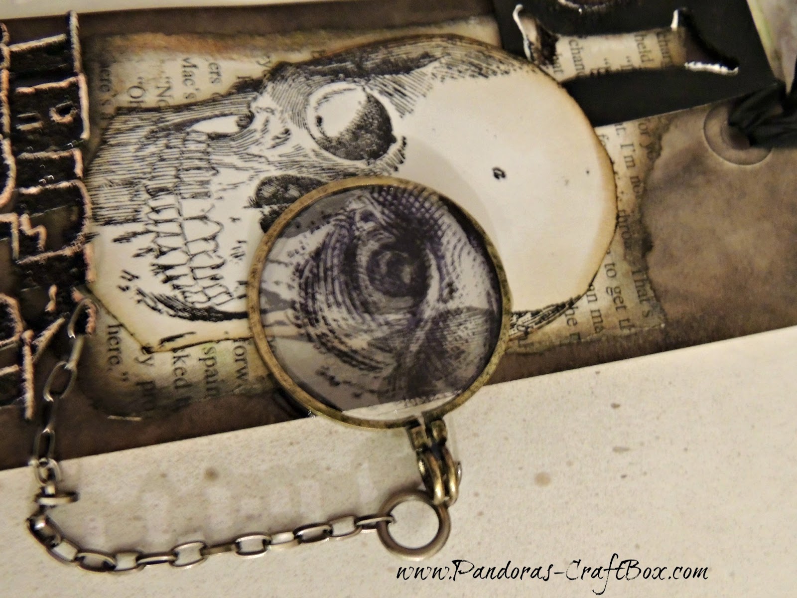 I have a thing for monocles and I have decided to use them again on one of my tags. I have also included a list of material that I have used in my tag.