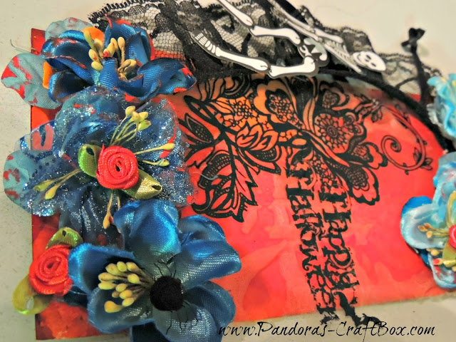 Last but not least is my Halloween tag #21. I was inspired by this lovely ribbon I got at my SoCal conference. I got it from this super cute little shop that I just loved everything she had in her store.