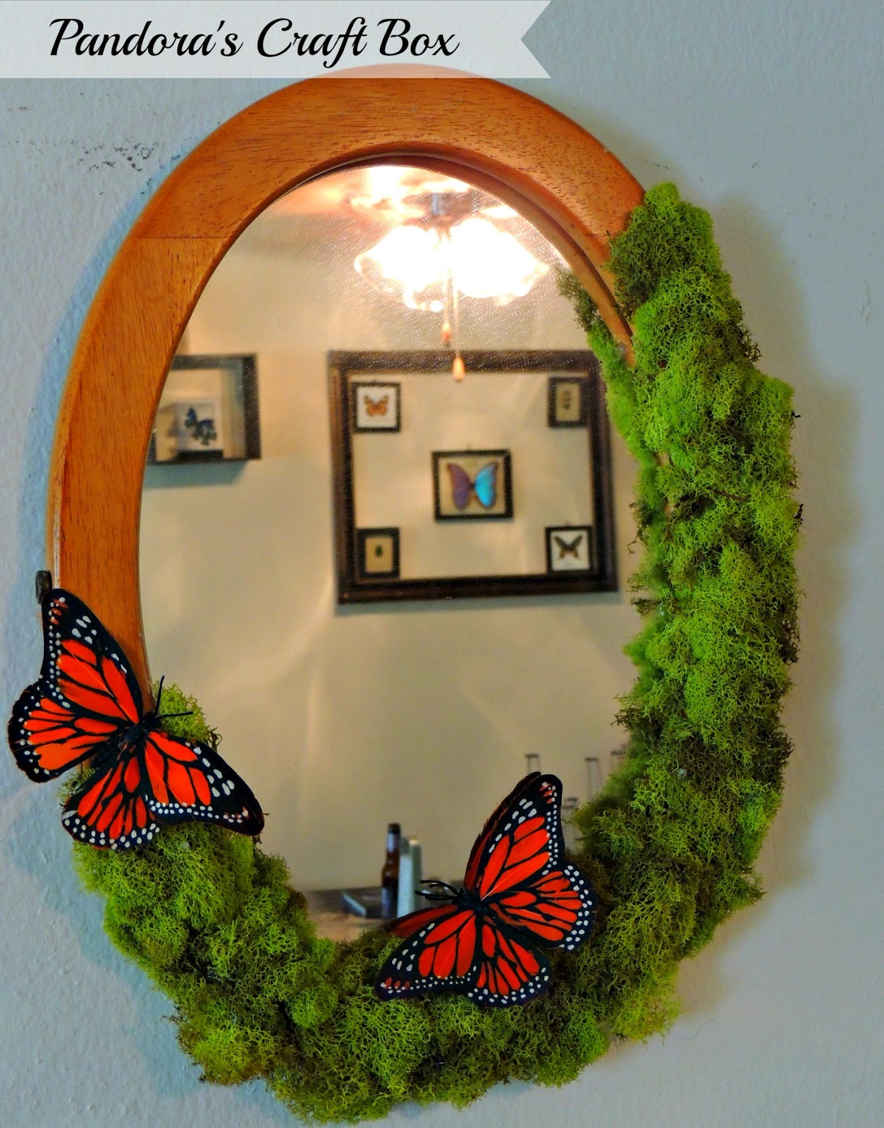 Moss covered mirror with butterflies tutorial