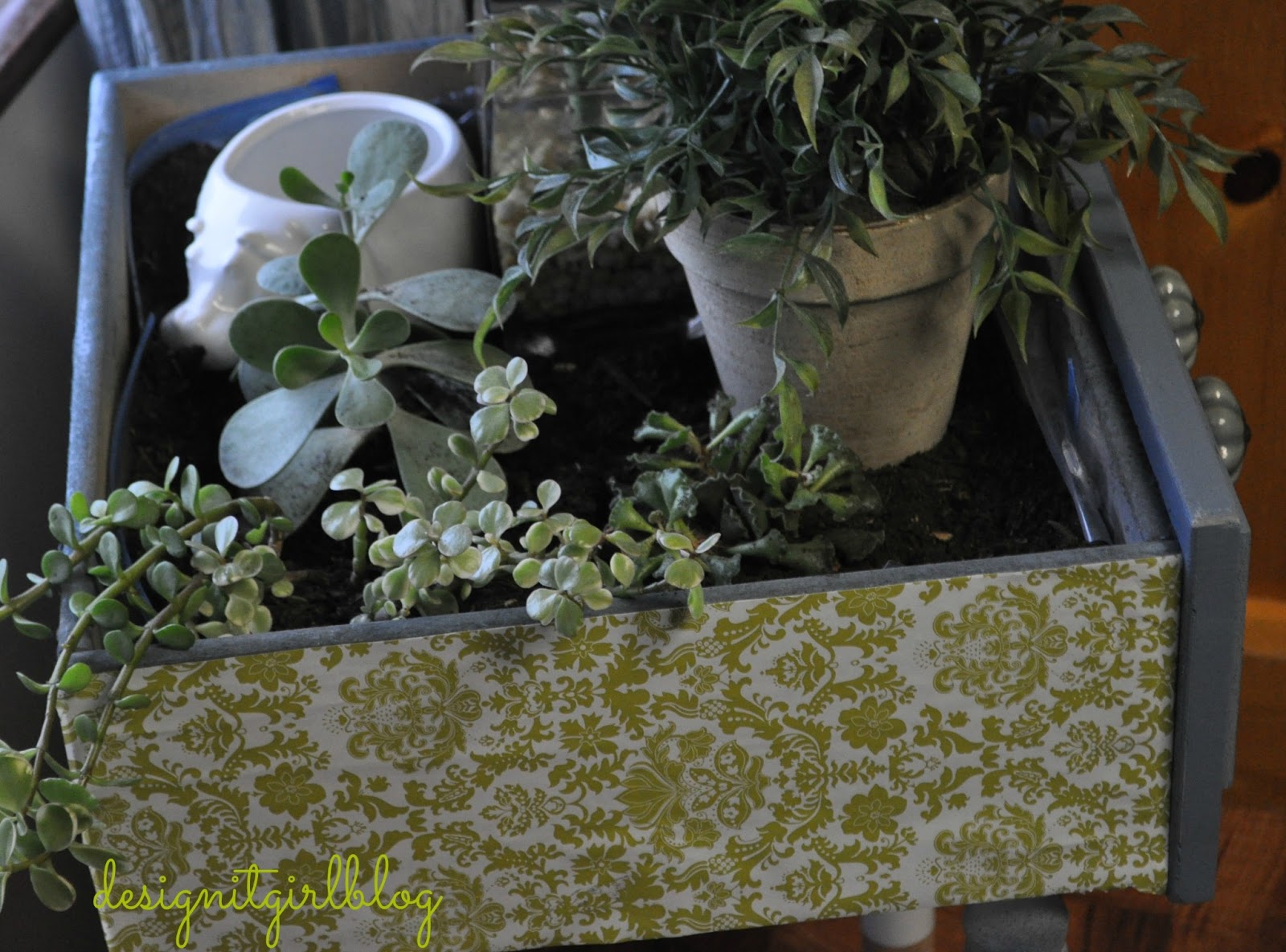 Today we have a wonderful DIY its all about turning a kitchen drawer or any kind of drawer you might have laying around into a planter and guess what she added legs to it too. Lets see who did Nicole from Design it Girl Blog did it.
